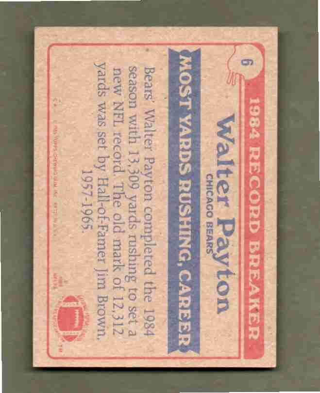 1985 Topps # 6 WALTER PAYTON Chicago Bears