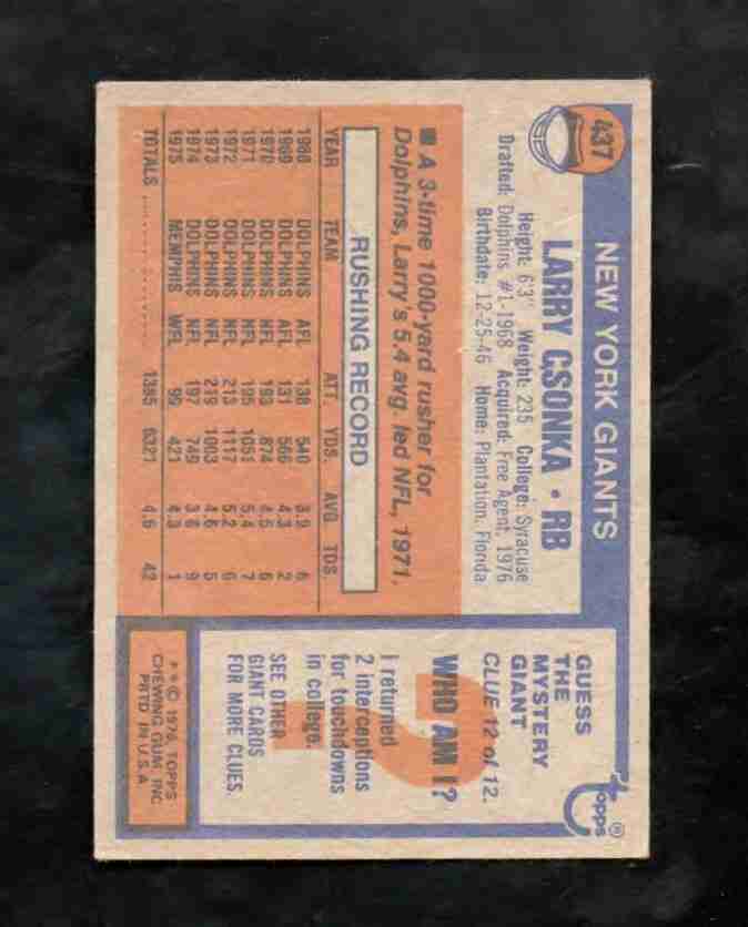 1976 Topps # 437 HOFer LARRY CSONKA NY Giants