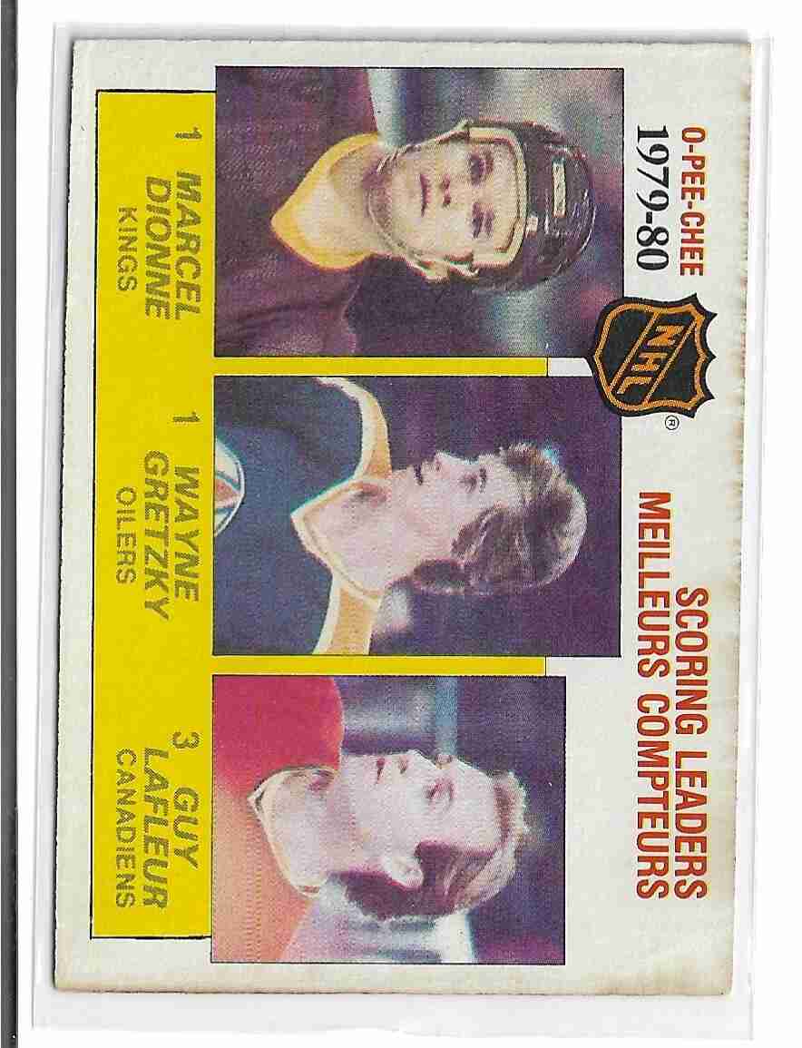 you rae bidding on the item in the scan. feel free to ask any questions about this item. 80/81 OPC # 163 Scoring Leaders Gretzky/Dionne/LaFleur