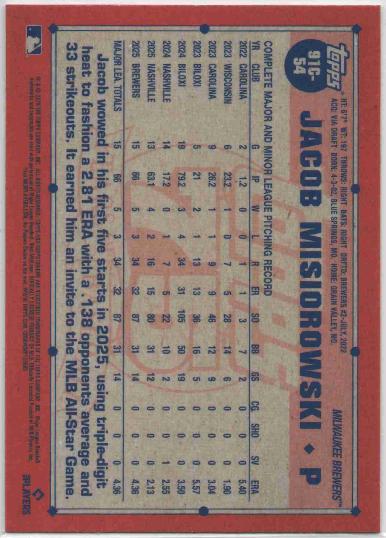Jacob Misiorowski 2026 Topps Chrome Silver Pack Refractor R