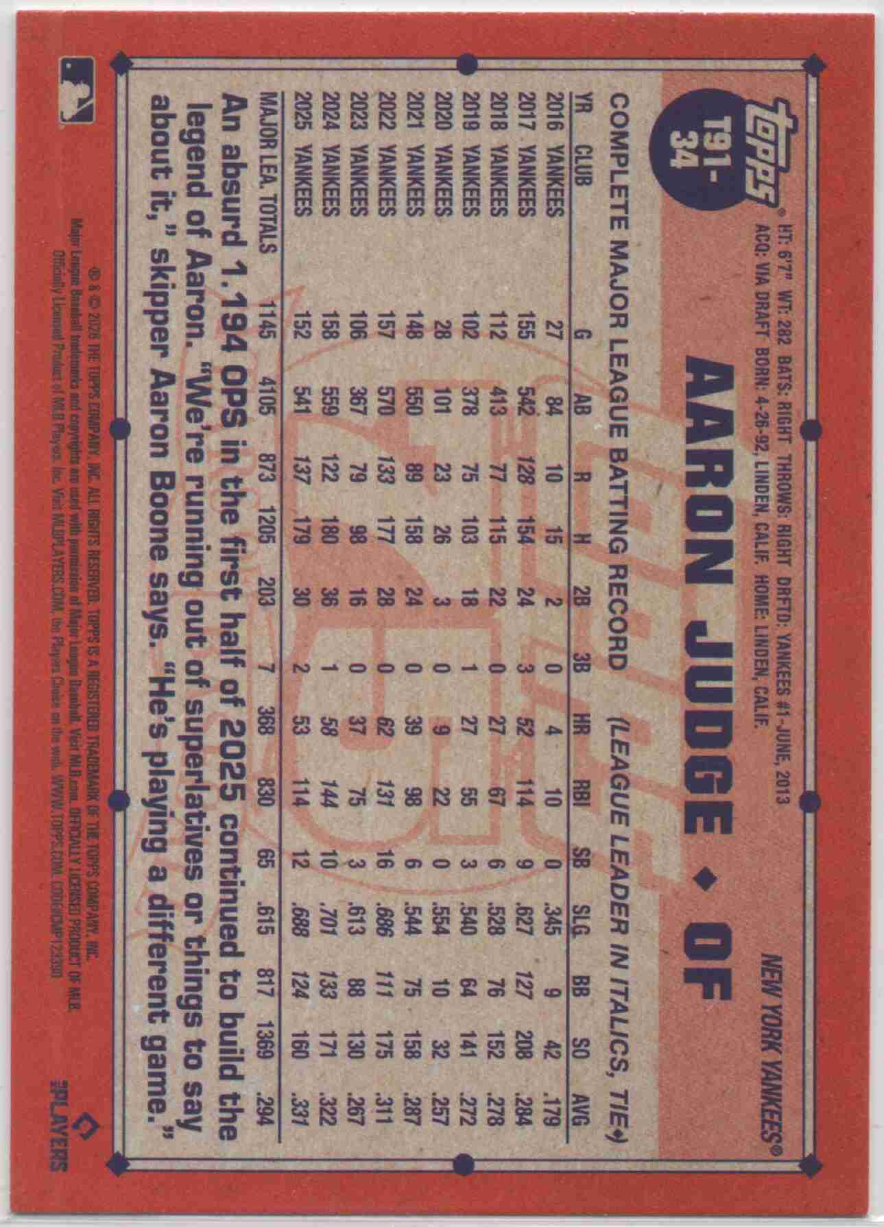 Aaron Judge 2026 Topps 1991 Insert #T91-34