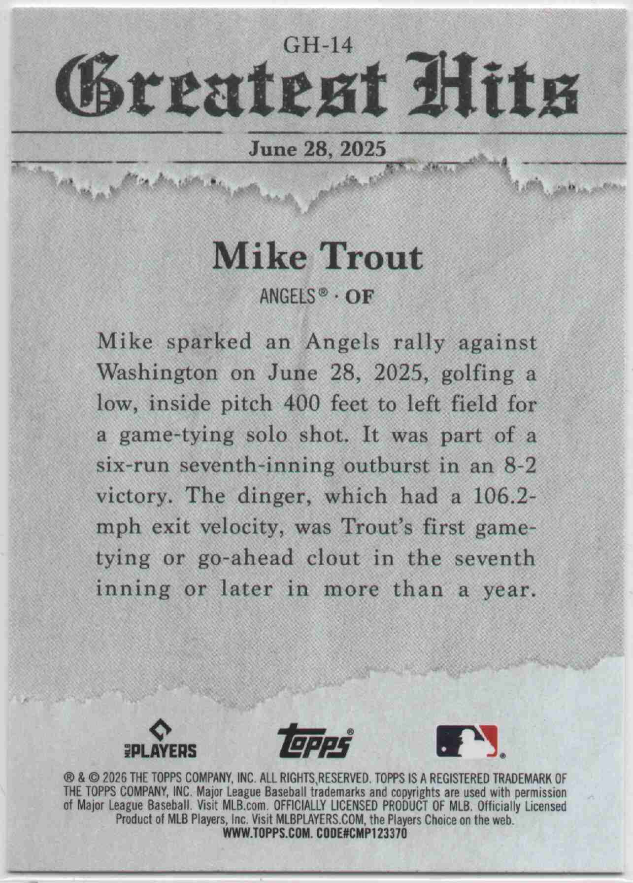 Mike Trout 2026 Topps Greatest Hits Insert #GH-14