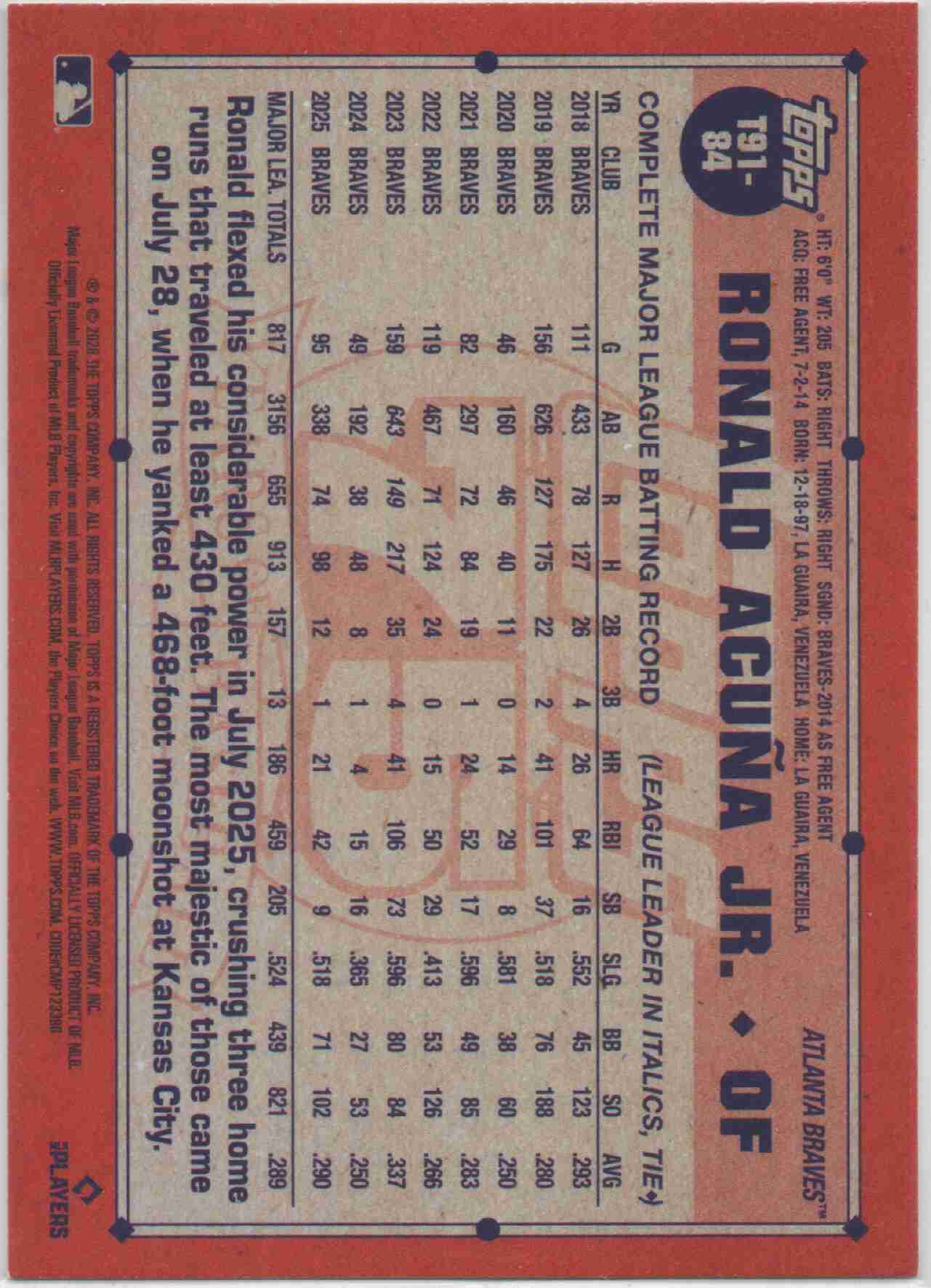 Ronald Acuna Jr 2026 Topps 1991 Insert #T91-84