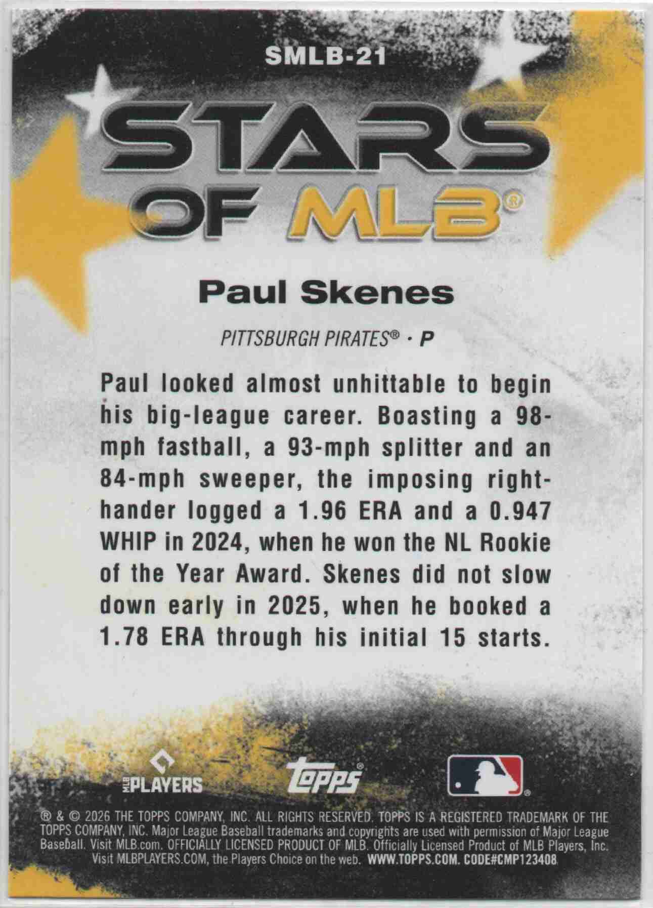 Paul Skenes 2026 Topps Stars of MLB Insert #SMLB-21