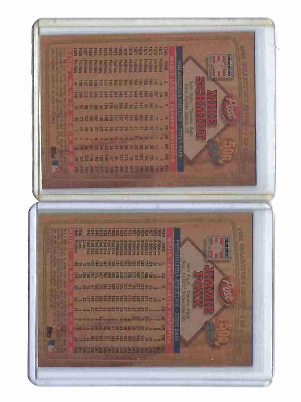 2001 POST 500 HR CLUB 2 CARD LOT FOXX/SCMIDT