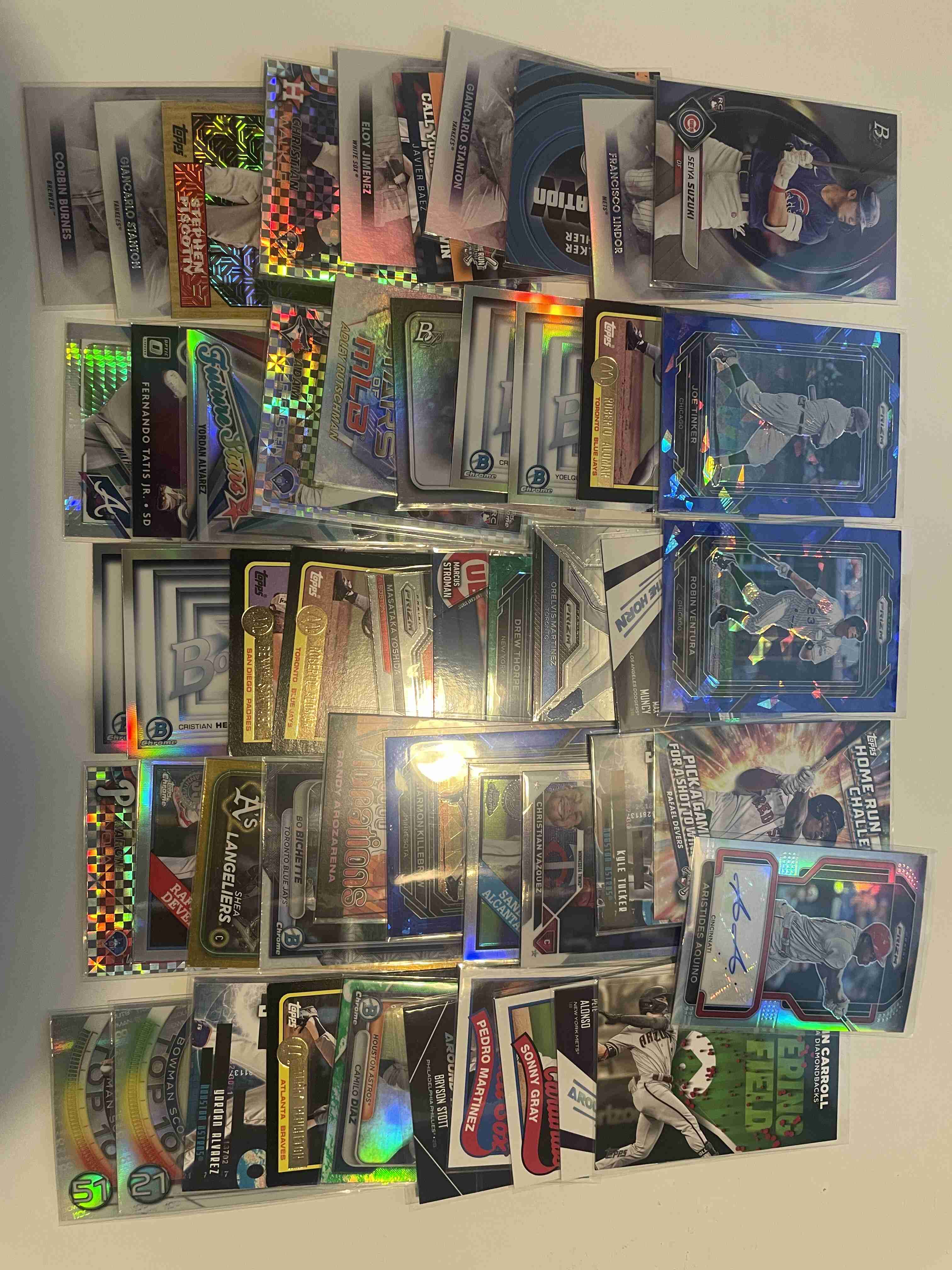 50 card lot of inserts, prizms and color. Including an auto of Aristides Aquino.