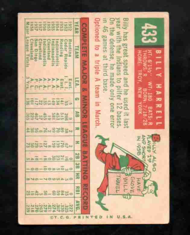 1959 Topps Semi Hi # 433 BILLY HARRELL St. Louis Cards