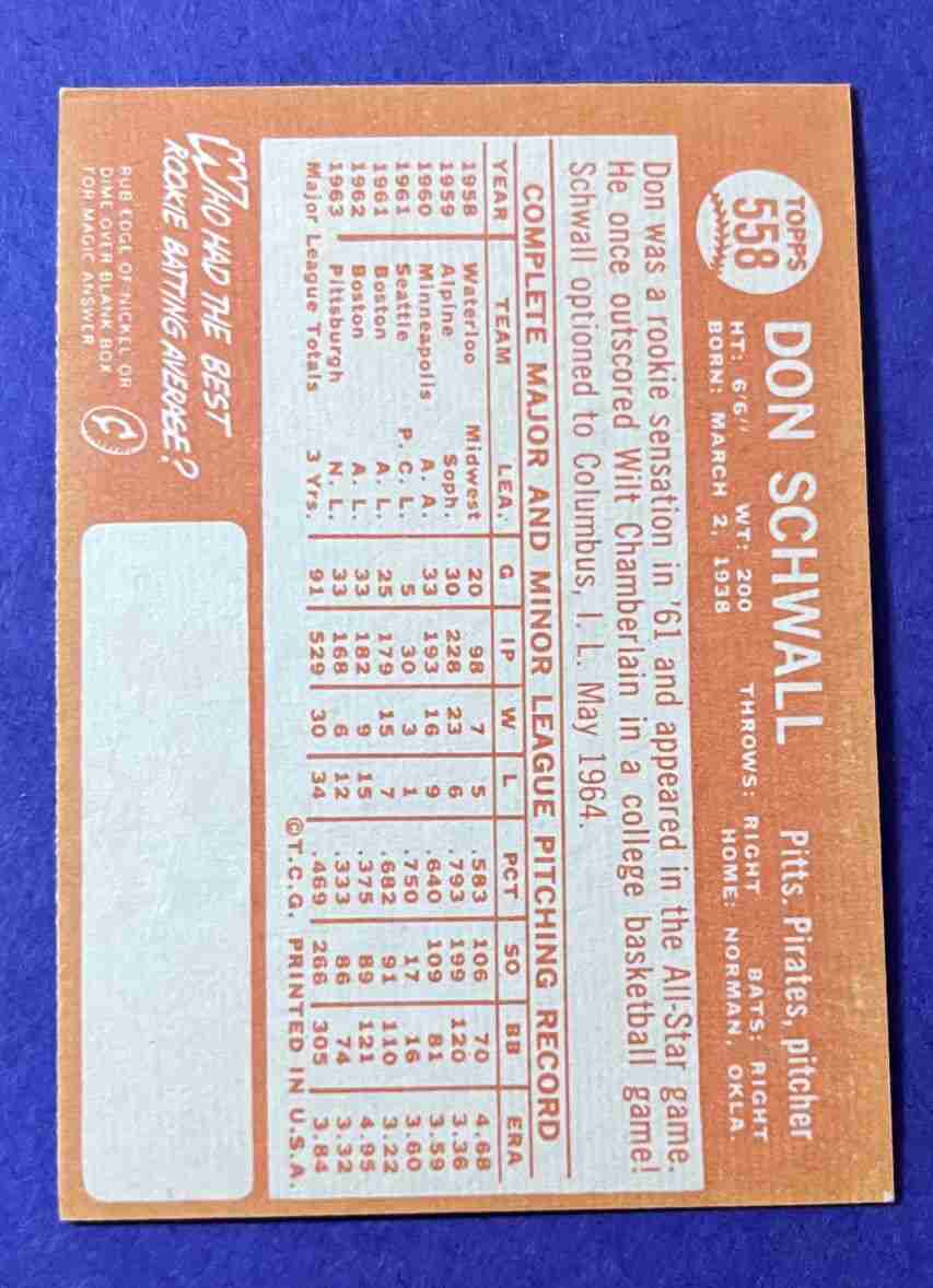 64 Topps DON SCHWALL Hi #558 ++