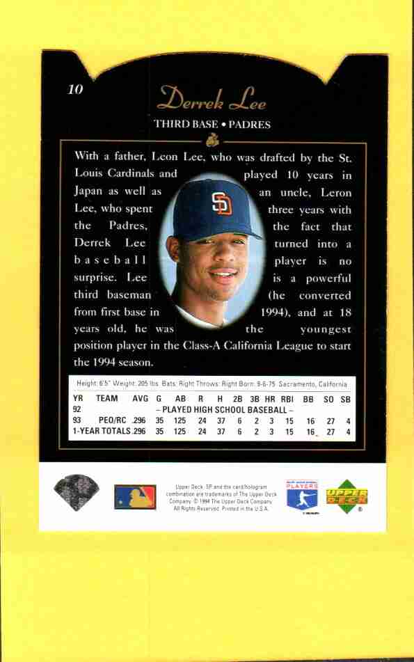 1994 SP Derrek Lee #10 Foil Die-Cut – Padres – Sharp Condition
