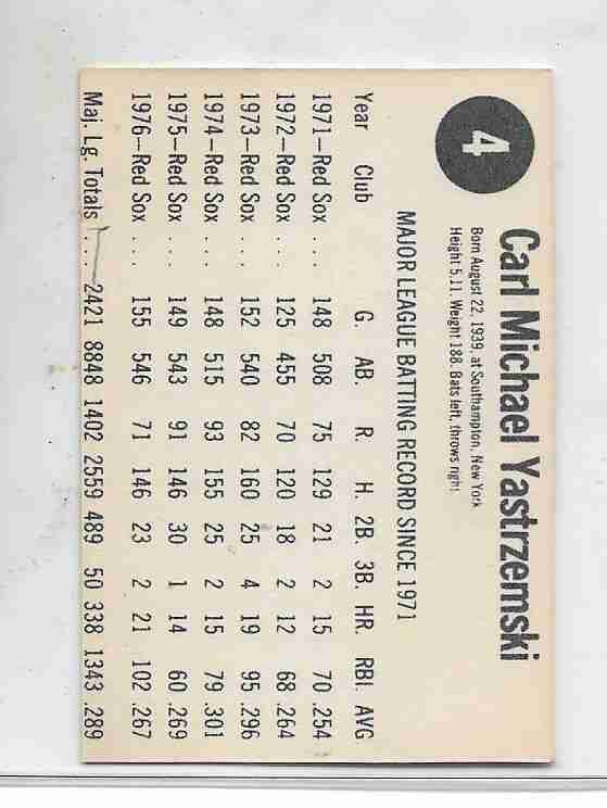 1977 Post #4 ~ Carl Yastrzemski Boston Red Sox HOF