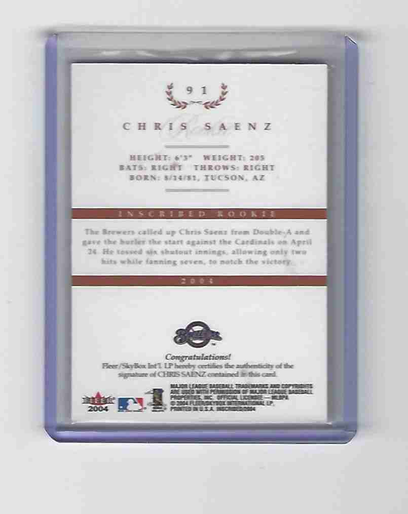 2004 FLEER INSCRIBED CHRIS SAENZ AUTO 281/750