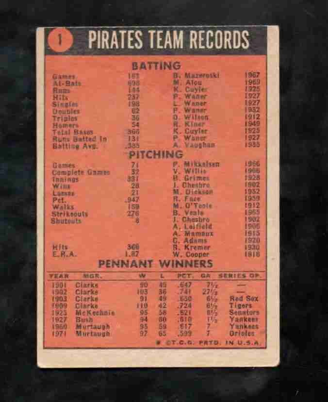 1972 Topps # 1 PITTSBURGH PIRATES TEAM