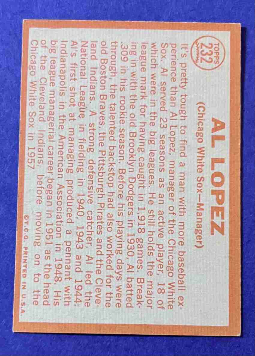 64 Topps AL LOPEZ #232 HOF!