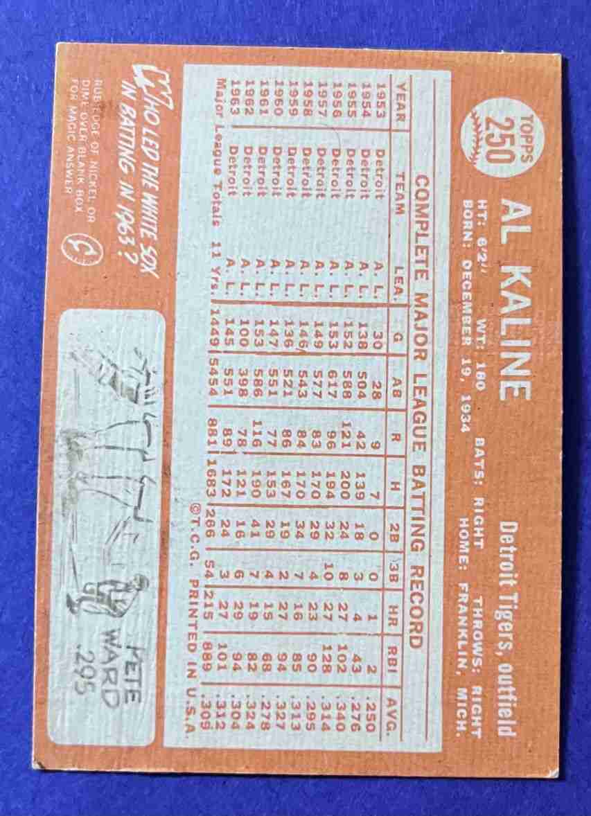 64 Topps AL KALINE #250 HOF!