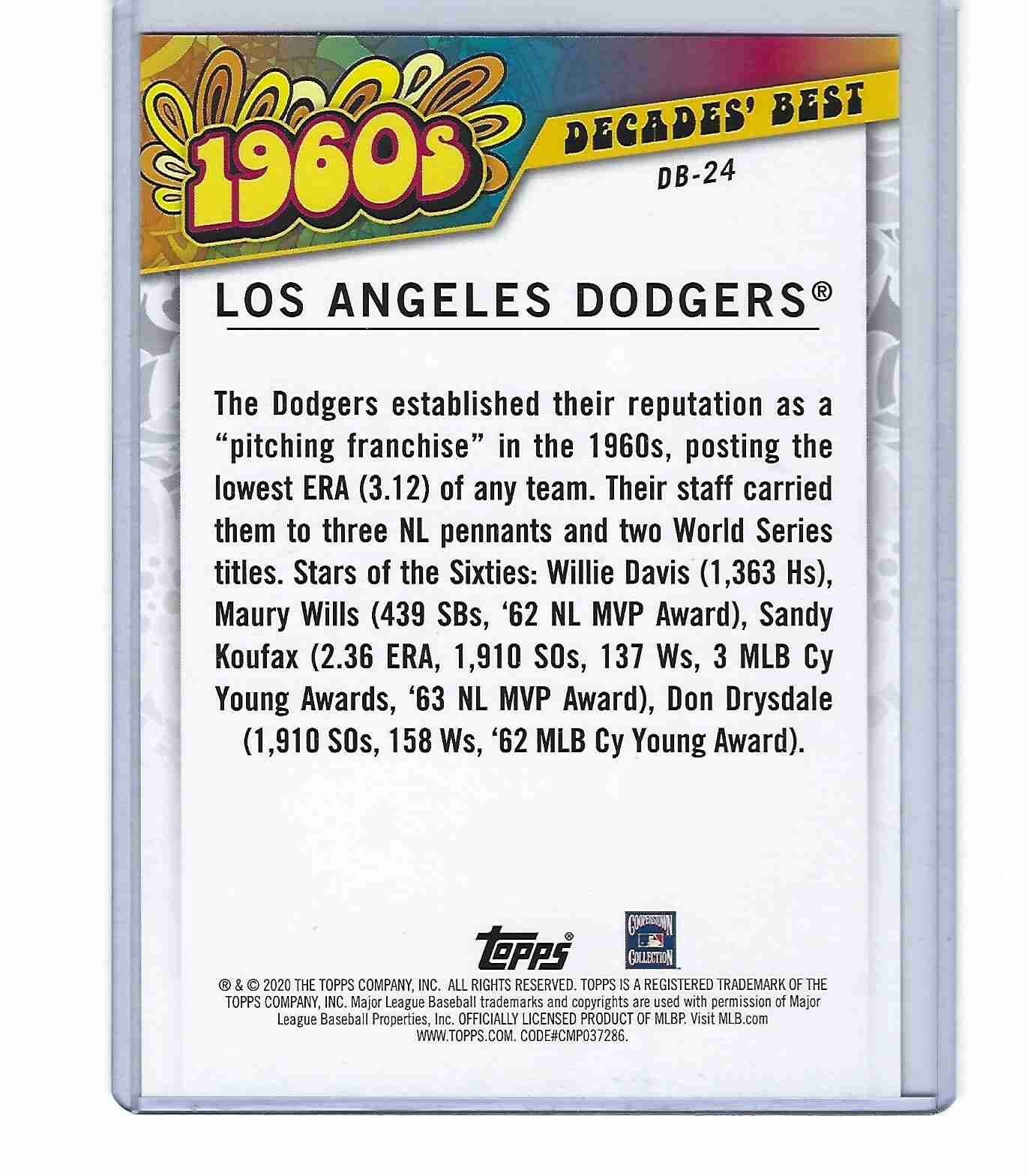 2020 TOPPS DECADES BEST 1960'S 5X7 LA DODGERS 19/49