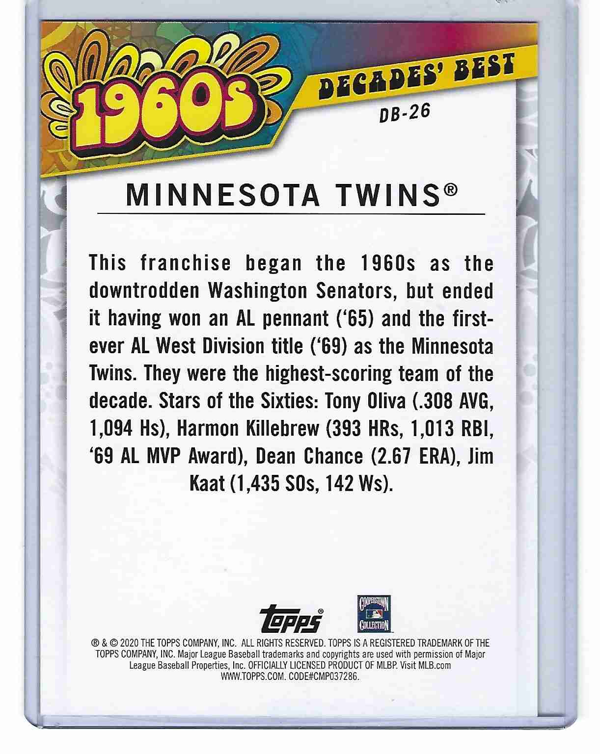 2020 TOPPS DECADES BEST 1960'S 5X7 MINNESOTA TWINS 19/49
