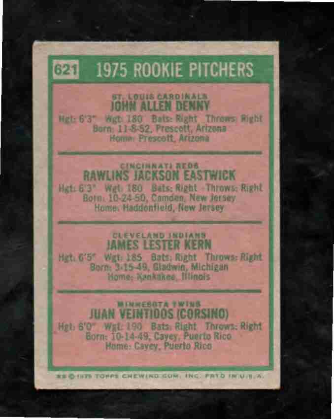 1975 Topps # 621 1975 ROOKIE PITCHERS Denny, Eastwick, Kern