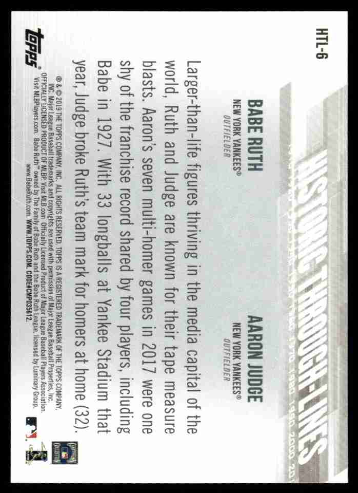 2019 Topps #HTL-6 Aaron Judge / Babe Ruth Historic Through