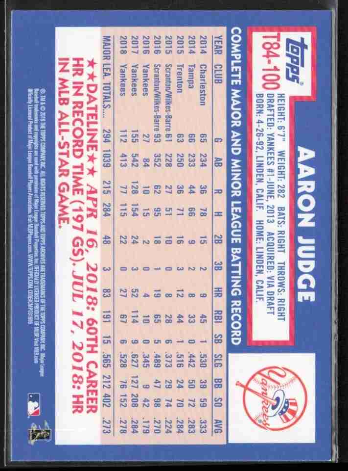 Aaron Judge 2019 Topps - 1984 Topps Baseball #T84-100