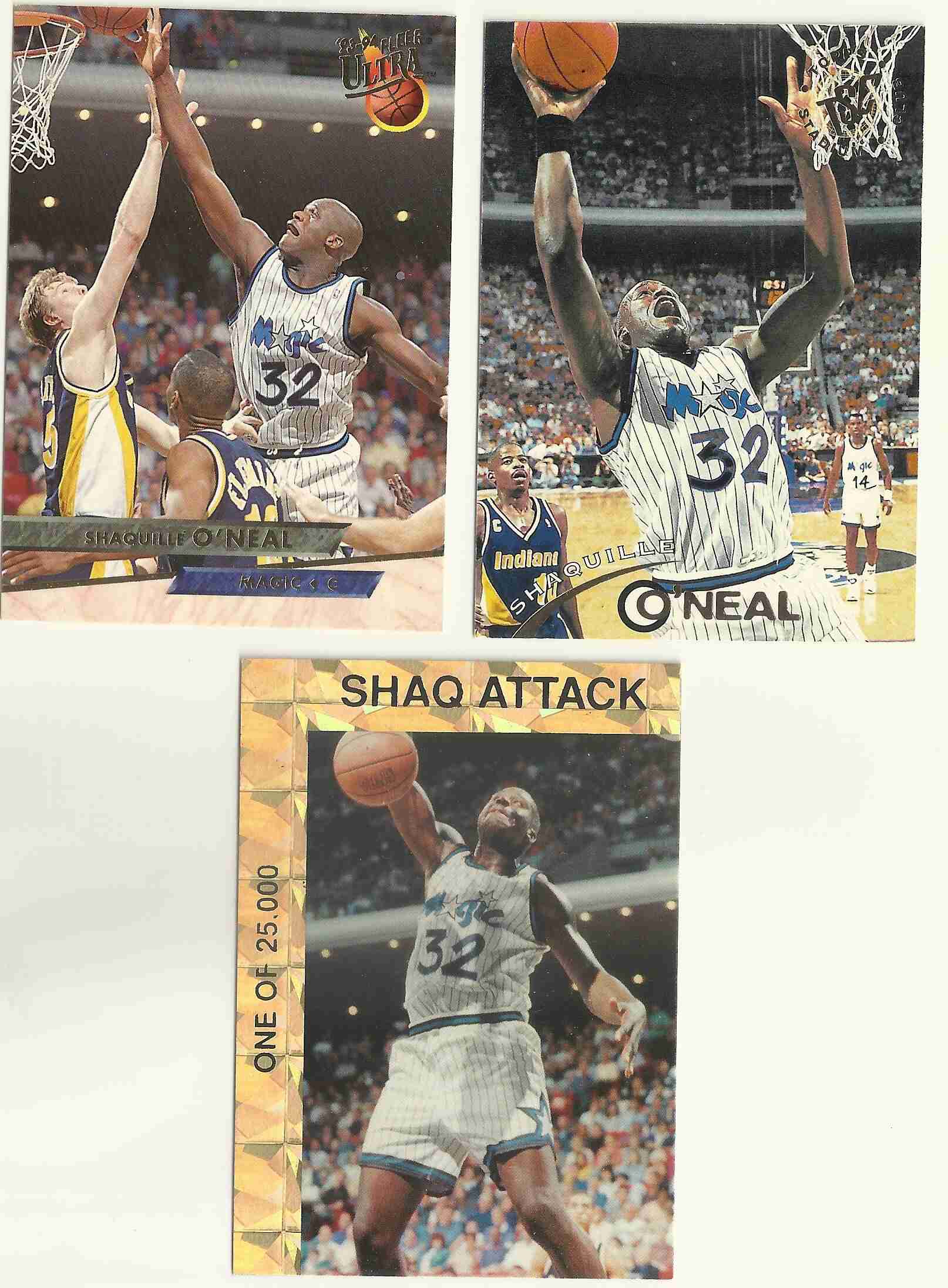 Lot of three Shaquille O'Neal cards - 93-94 Fleer Ultra #135, 94-95 Stadium Club #32, and Shaq Attack