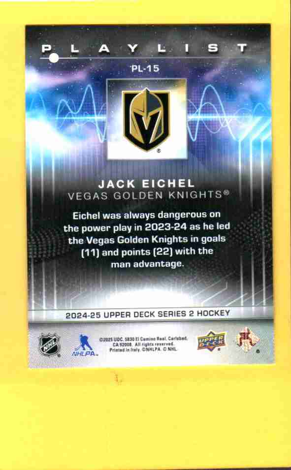 Jack Eichel Black #PL-15 – 2024-25 Upper Deck Series 2 Playlist – Vegas Golden Knights