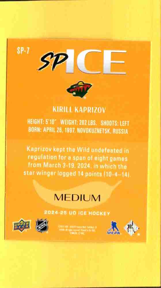 Kirill Kaprizov SP-7 – 2024-25 Upper Deck Ice “SPice – Medium” Insert