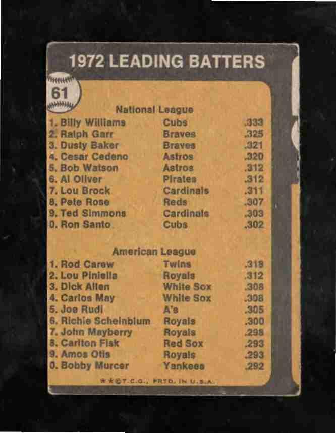1973 Topps # 61 1972 Batting Leaders WILLIAMS & CAREW