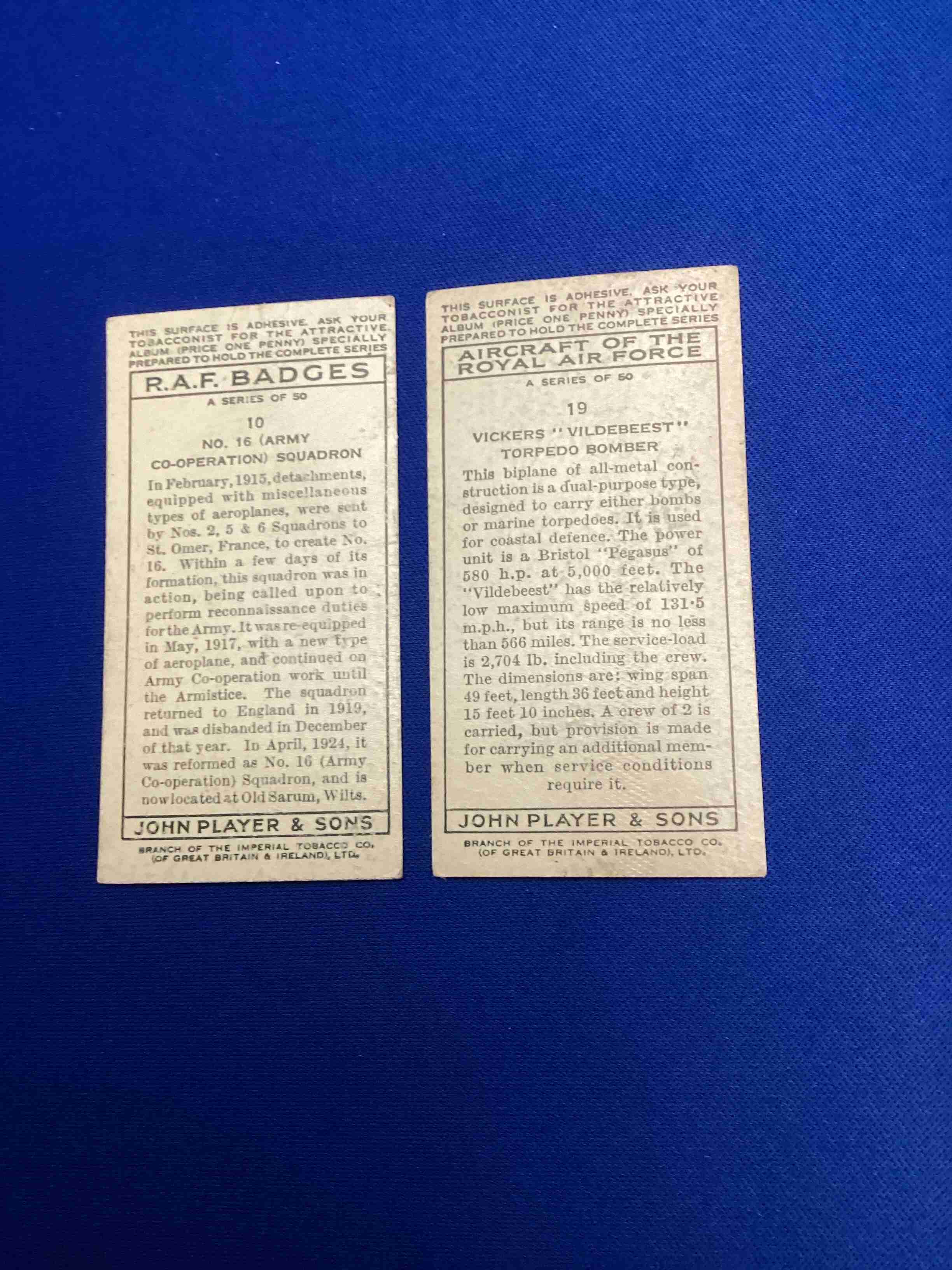 Lot of 2 1938-39 Air Force Player Tobacco cards