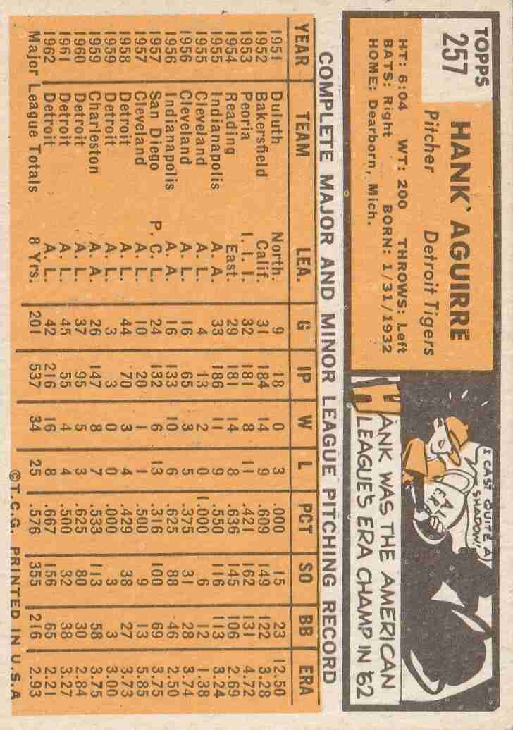 1963 Topps #257 Hank Aguirre Tigers