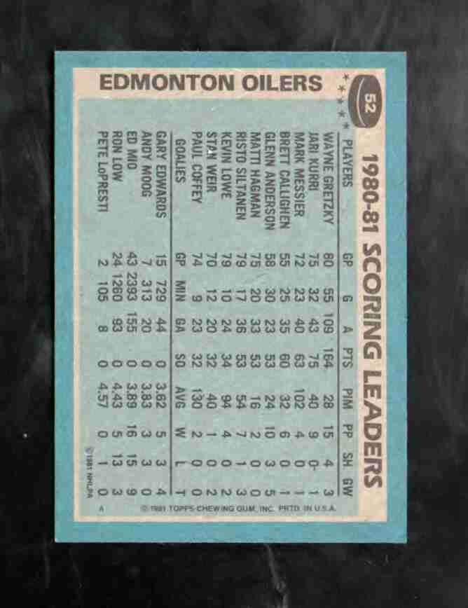 1981 Topps # 52 WAYNE GRETSKY Oilers Team Leader
