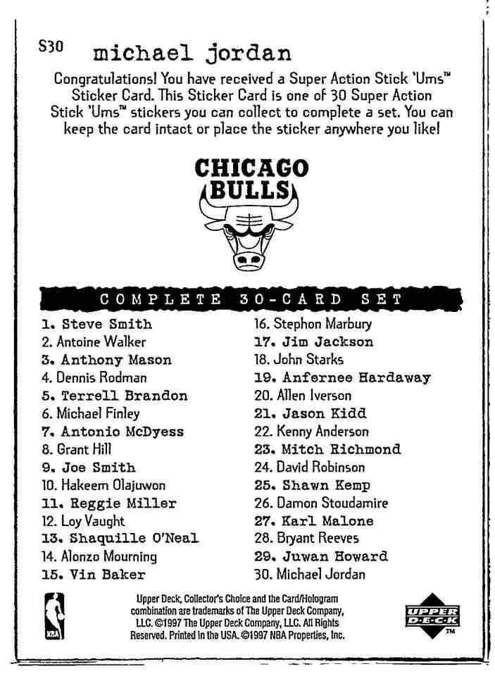 1997-98 UD Collector's Choice Stick-Ums Michael Jordan S30