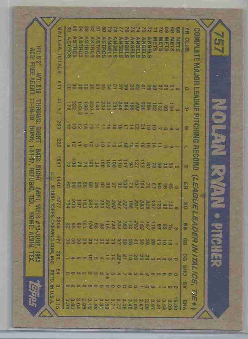 1987 Topps #580 NOLAN RYAN Houston Astros