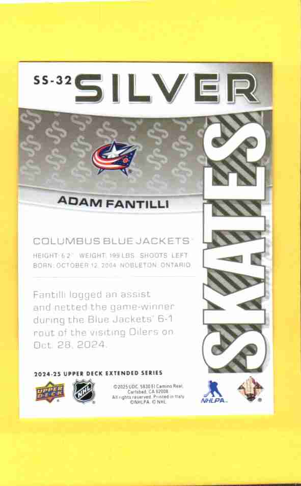 Adam Fantilli – 2024-25 Upper Deck Extended Series Silver Skates #SS-32.