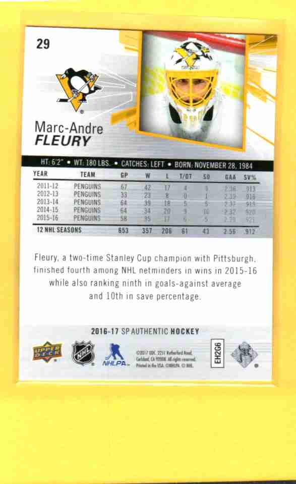 Marc-André Fleury – 2016-17 Upper Deck SP Authentic #29.