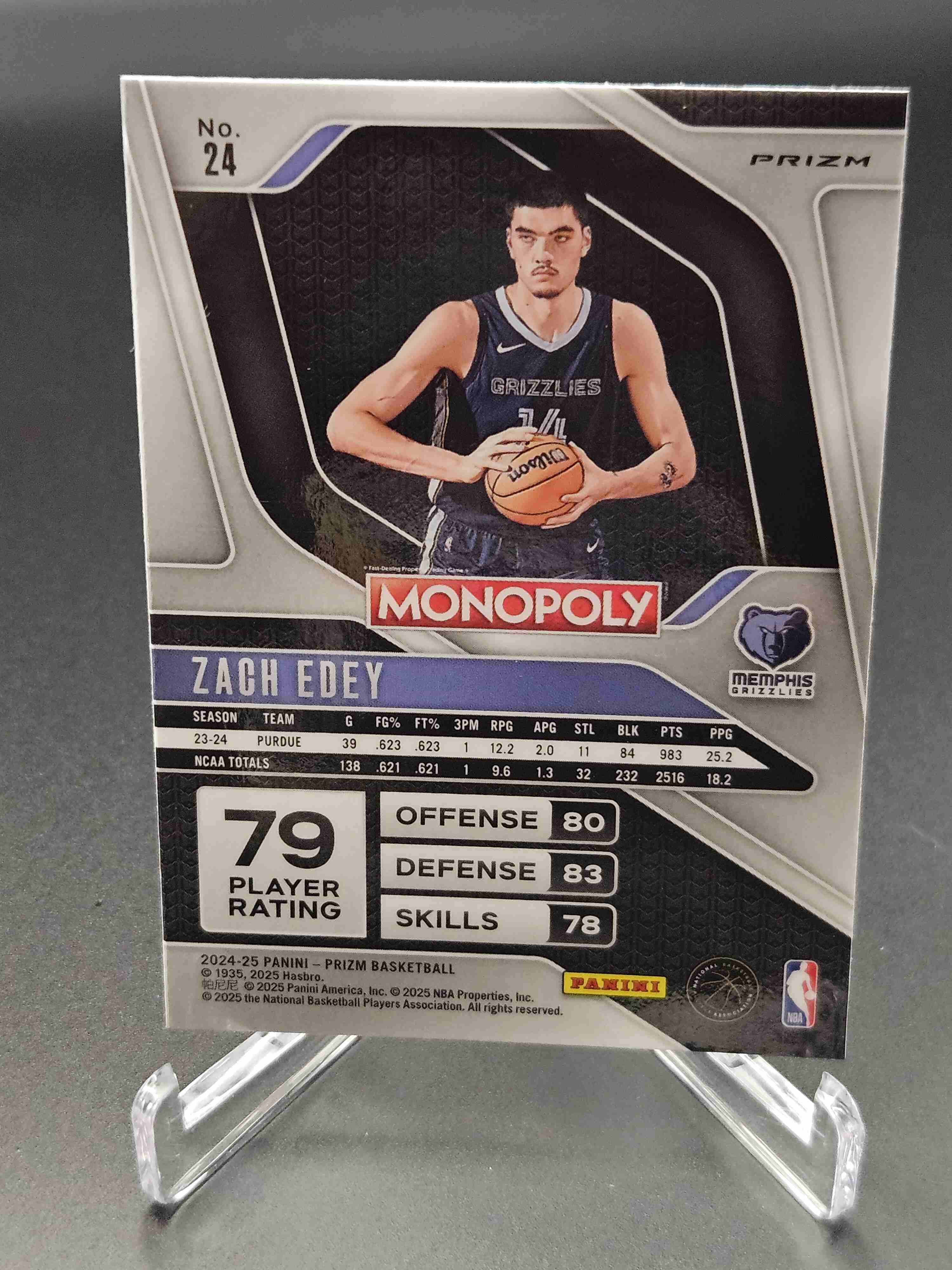 2024 Prizm Monopoly ZACH EDEY #24 Ruby Red Wave RC