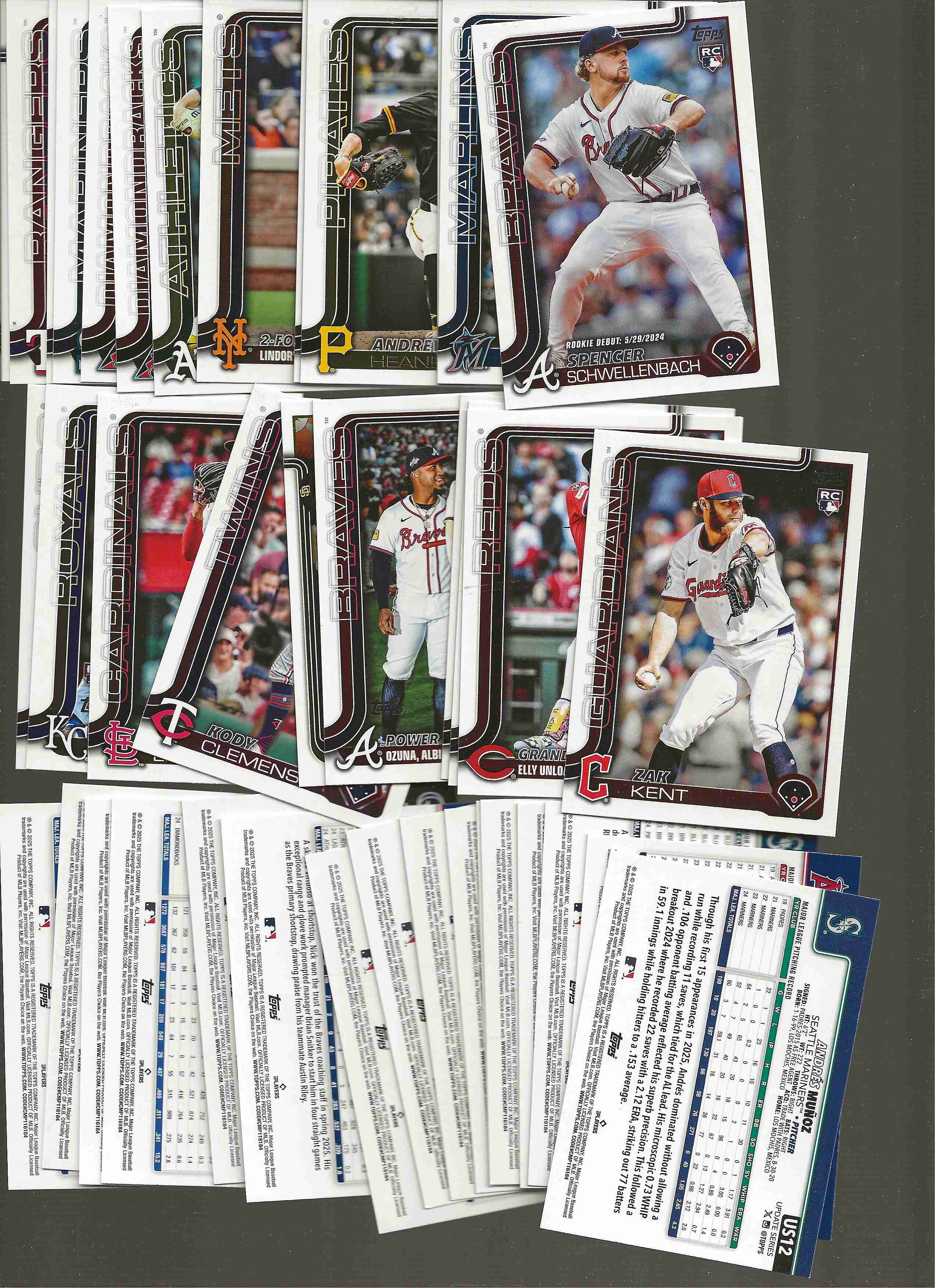 Here is some help to complete your set. Closeout. Less than 10 cents per card (multi-win) 38 cards contain RC and dups. Numbers are #US12 15 19 23 23 24 51 645-RC 67-RC 91 106 123-RC 125 143-RC 151-RC 155 156 176-RC 185-RC 208 221 229 232-RC 233 235-delacruz 238-RC 238-RC 244 249-RC 259-RC 265-RC 267-RC 272 283 290 290 309 310-RC 327-RC *********************************************and from 2025 Topps Chrome set. Numbers are #3-RC 11 19-RC 32 38-RC 47-RC 51 54 69 87-RC 101-Bichette 107 116-RC 118 136-Alonso 142 155 159-Tatis 175 178 204 207 246 254 255-RC 279 281 282 284 286 288-RC 292 293