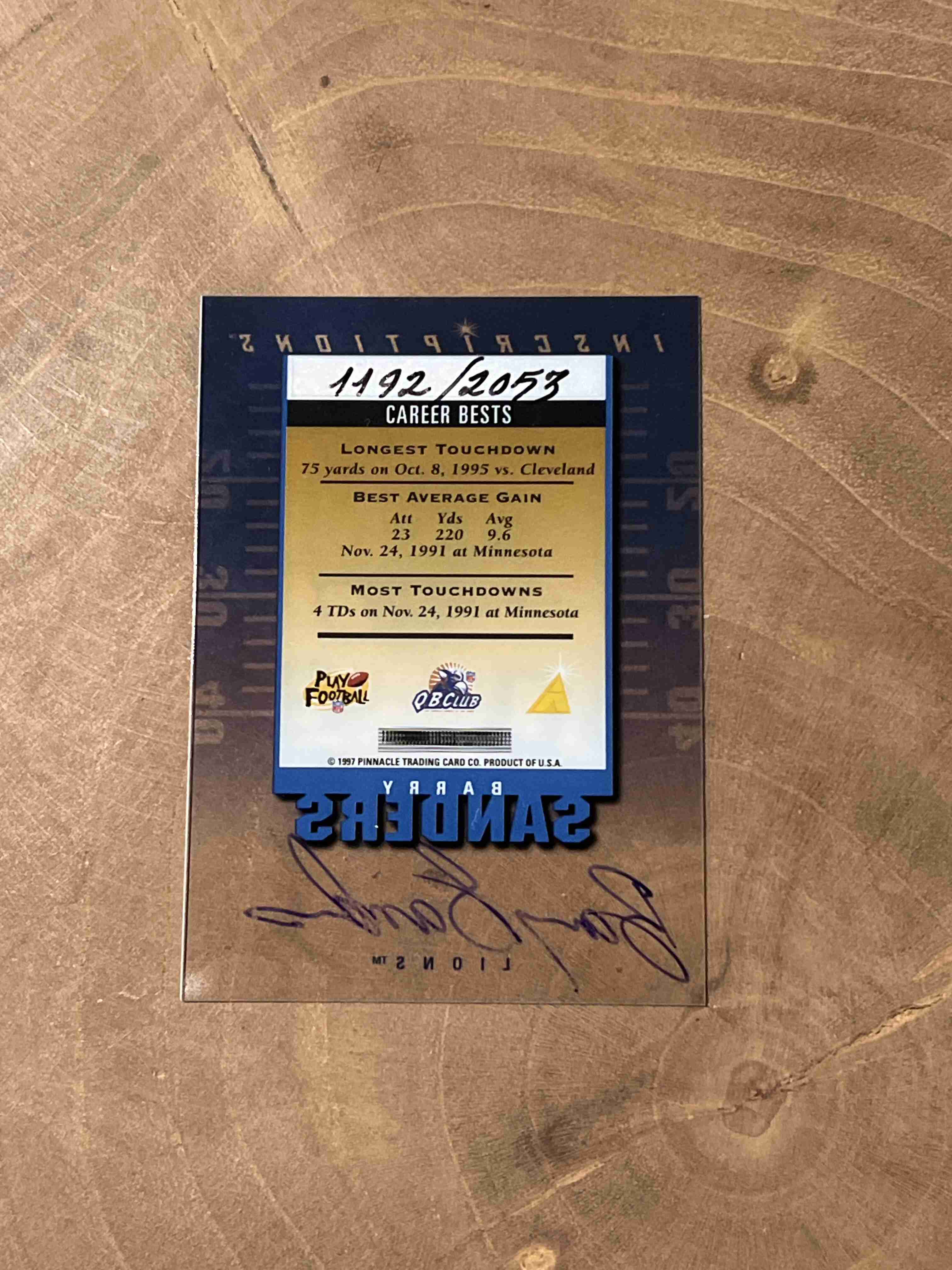 BARRY SANDERS 1997 PINNACLE (INSCRIPTIONS)(AUTO)