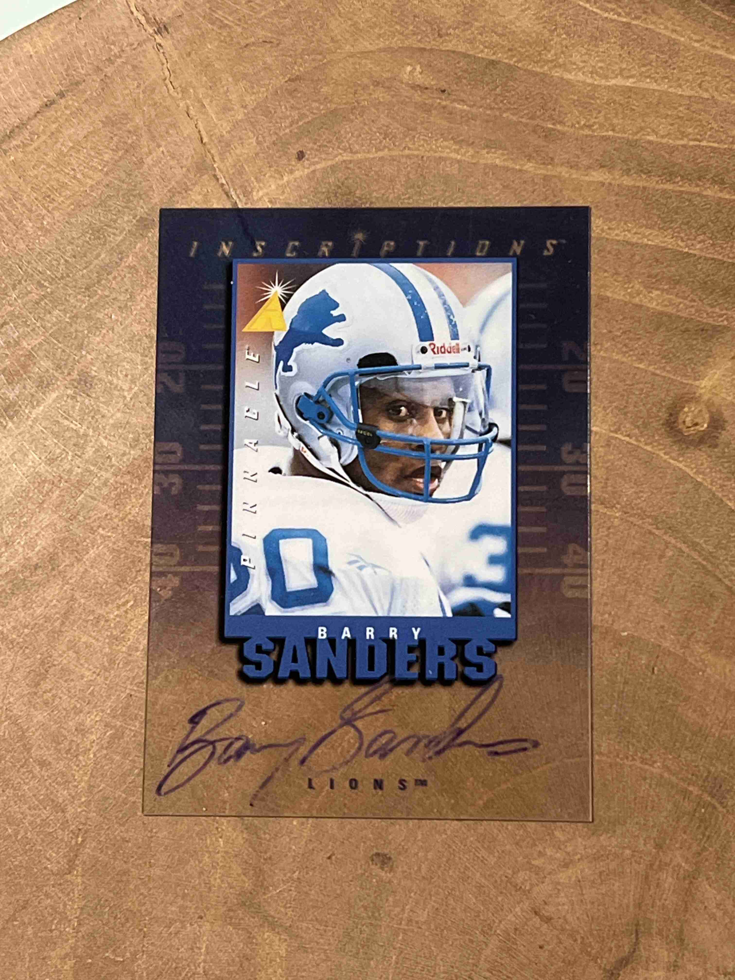 This is a 1997 Pinnacle Inscriptions (Auto) of Barry Sanders awesome card and auto of this Hall of Fame runningback.