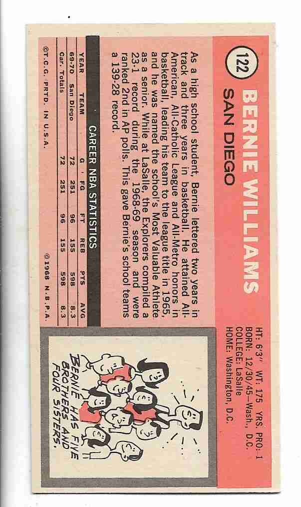1970-71 Topps #122 ~ Bernie Williams Dan Diego Rockets RC