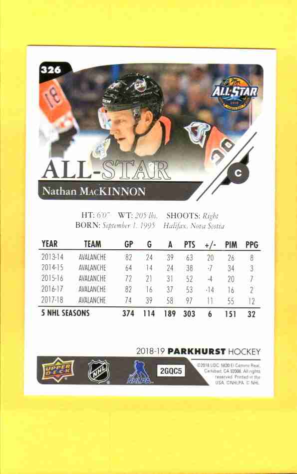 Nathan MacKinnon – 2018-19 Parkhurst All-Star #326.