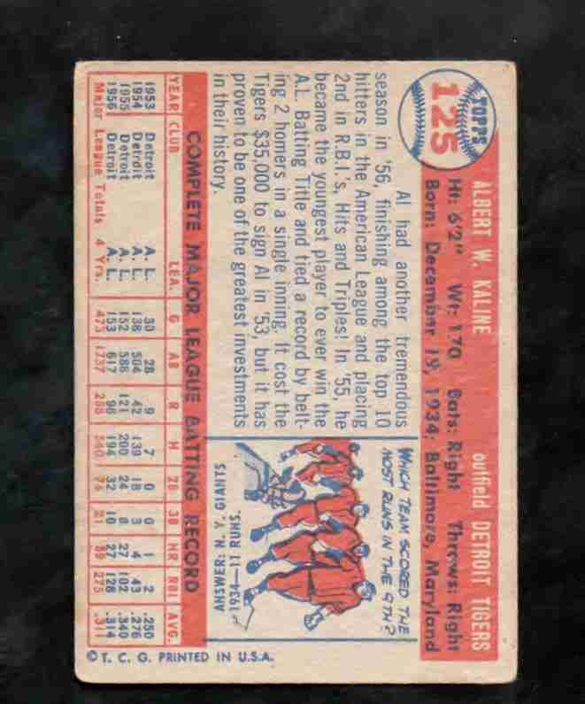 1957 Topps # 125 HOFer AL KALINE Detroit Tigers