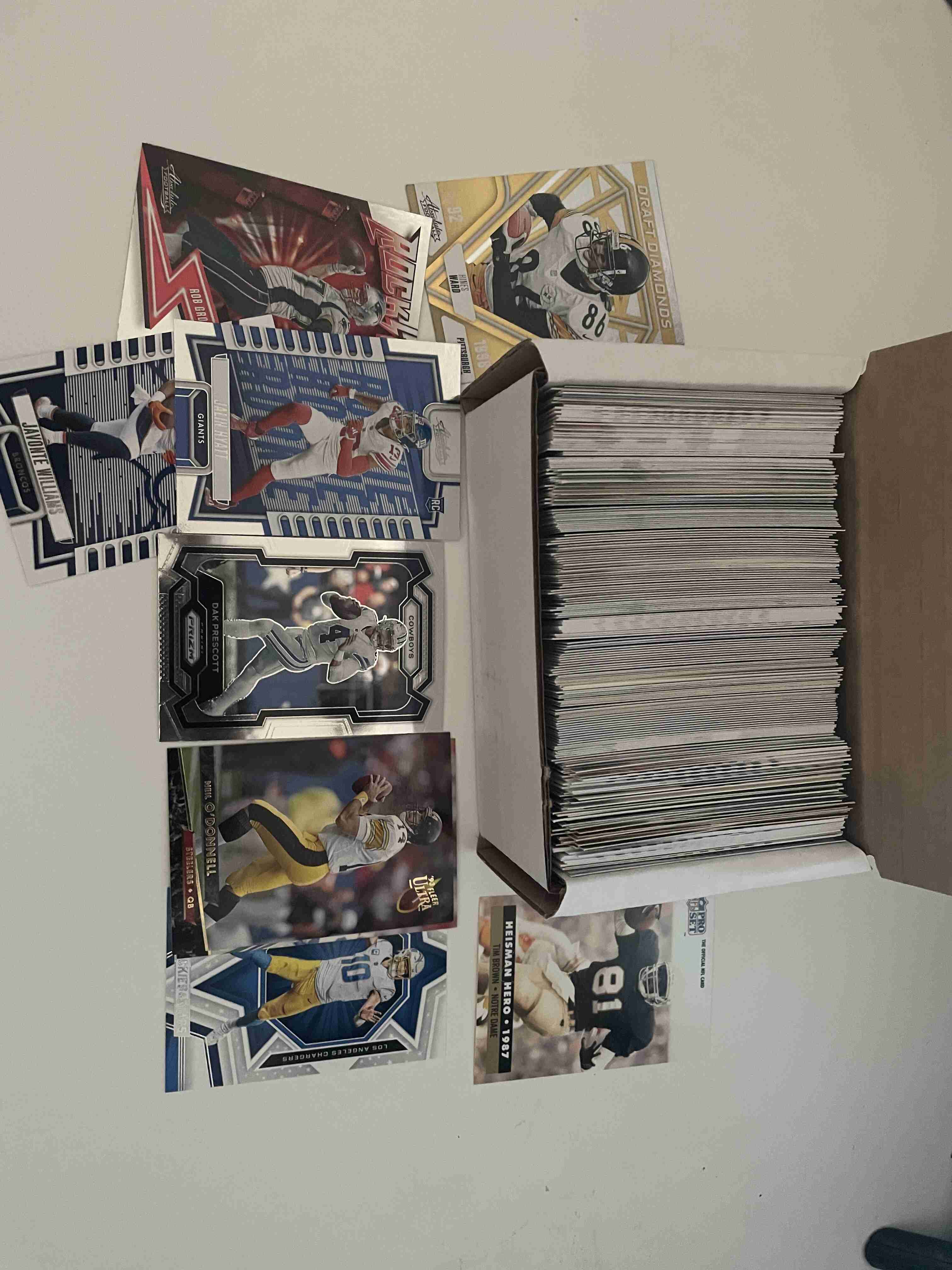 Full box of cards. Various years and maybe a little duplication, I just grabbed a pinch from the stash and put them in here. Saw plenty of star QB's and position players. No autos or relics. Strong lot of stars