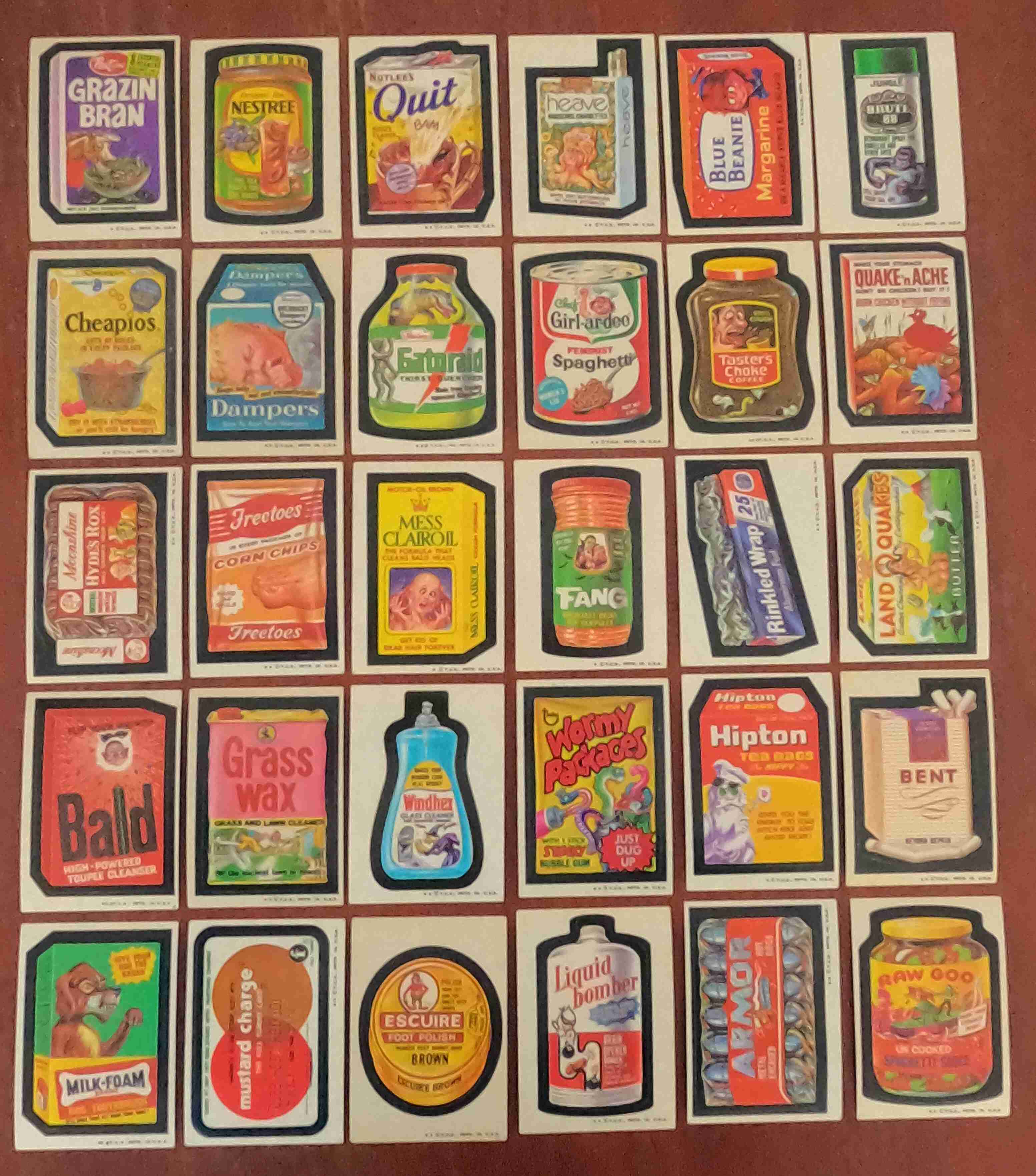 This classic 1973 set includes 30 stickers and features the wildly popular parody product stickers that made Wacky Packages a pop-culture phenomenon of the 1970s. Series 4 includes some of the most recognizable and collectible spoofs from the original run, showcasing the bold artwork and humor that collectors love. It does not include the 2 discontinued stickers (Bum Chex and Choke Wagon).