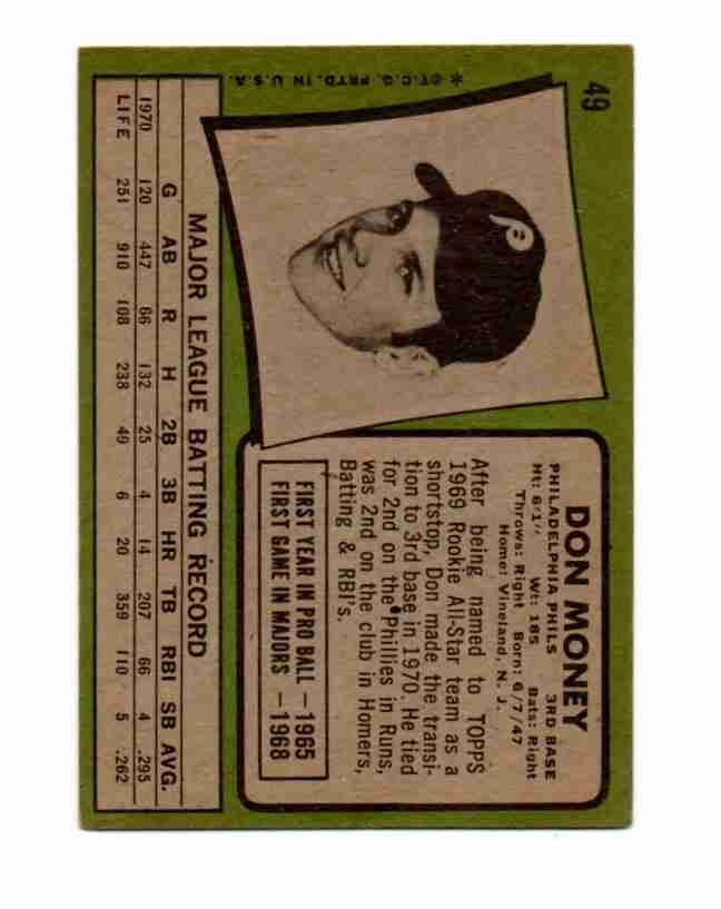 1971 Topps # 49 DON MONEY Phil. Phillies