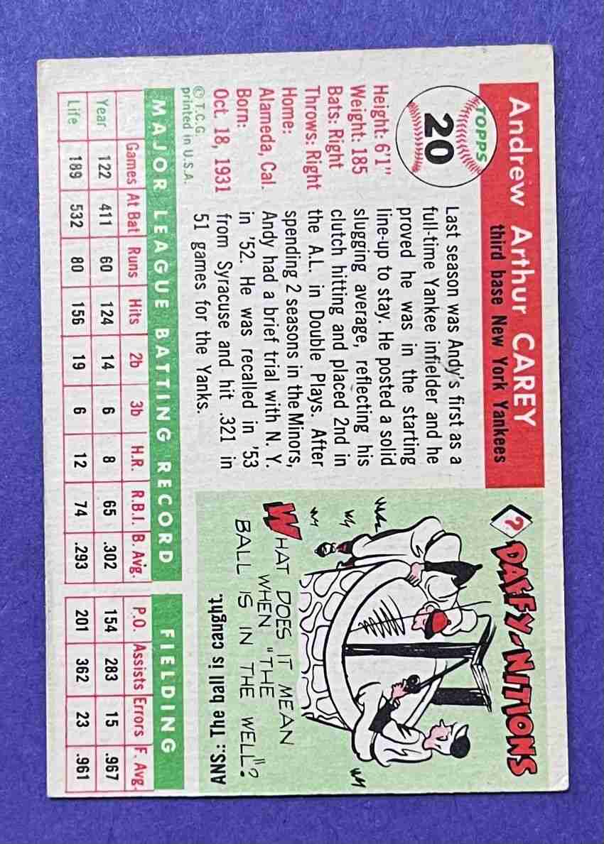 55 Topps ANDY CAREY #20 +++