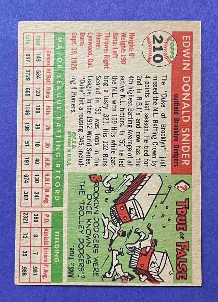 55 Topps DUKE SNIDER Hi #210 HOF!
