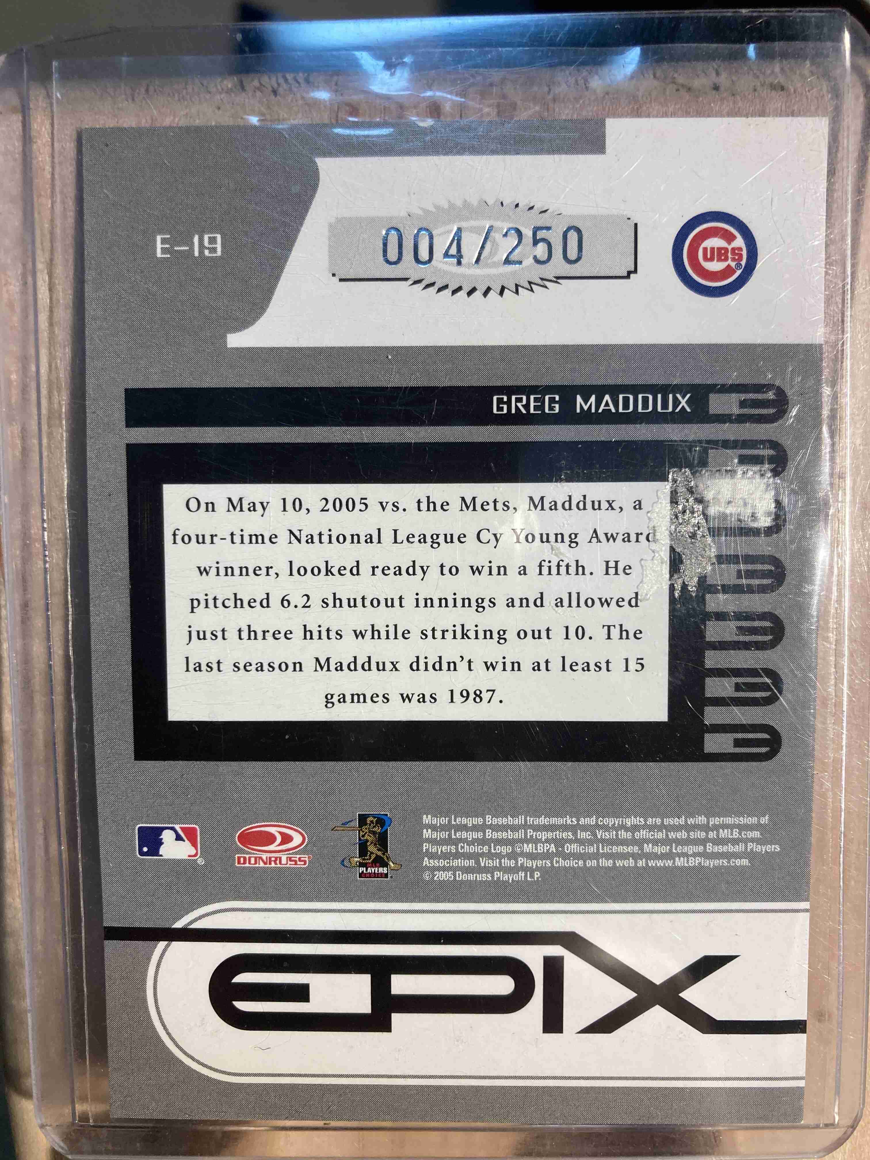 2005 Zenith Greg Maddux EPIX MOMENT Orange #’d 4/250!