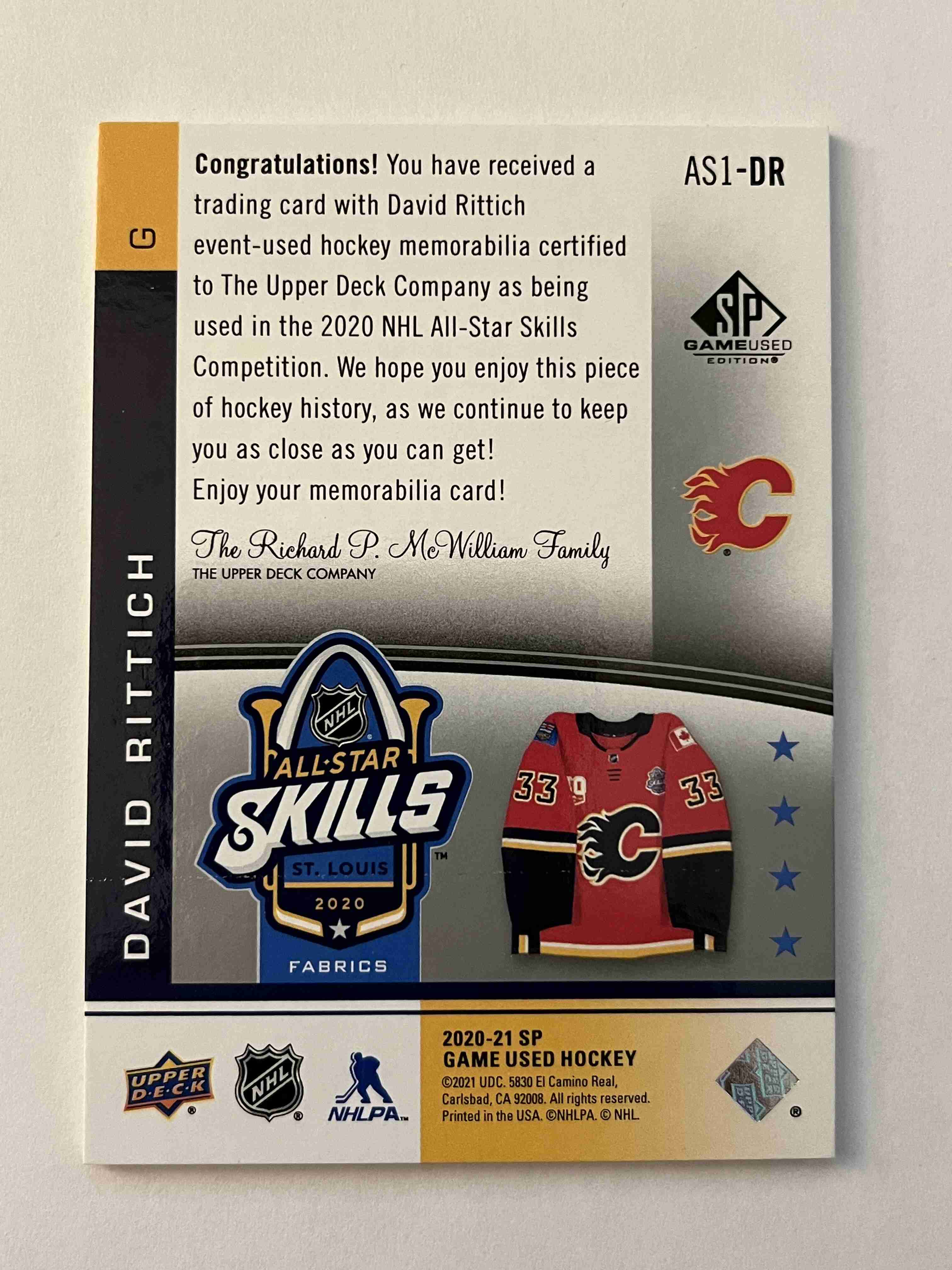 David Rittich 2020-21 SP Game Used Fabrics All-Star Skills