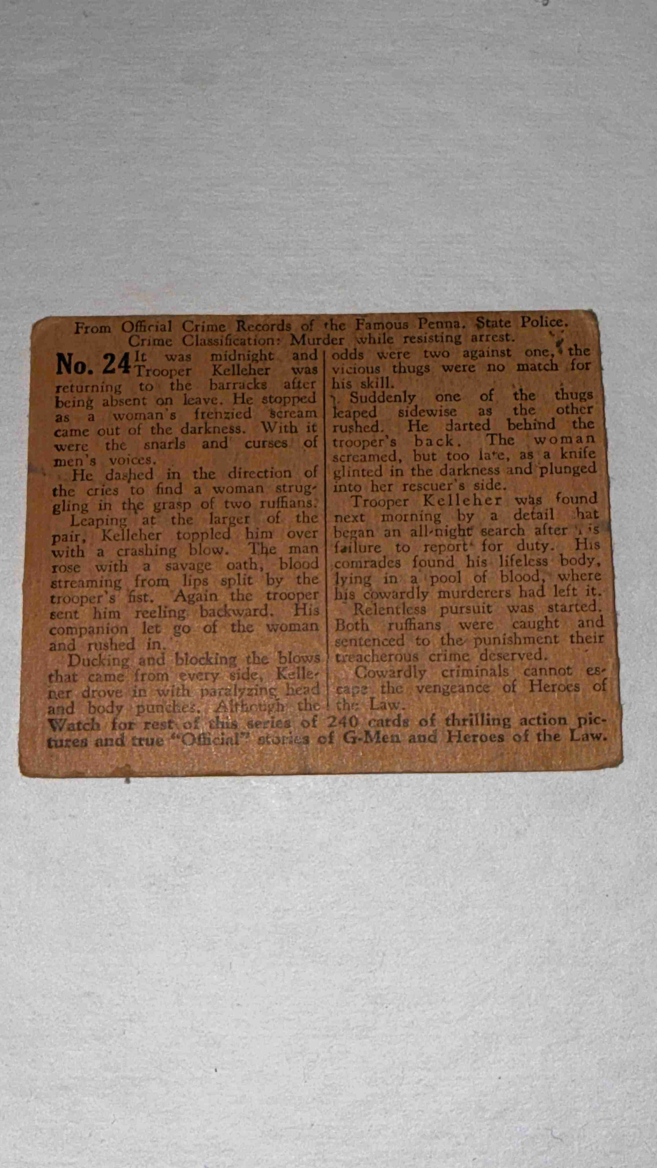 1936 Gum Inc. G-Men & Heroes of the Law #24 A Knife Thrust in the Dark!