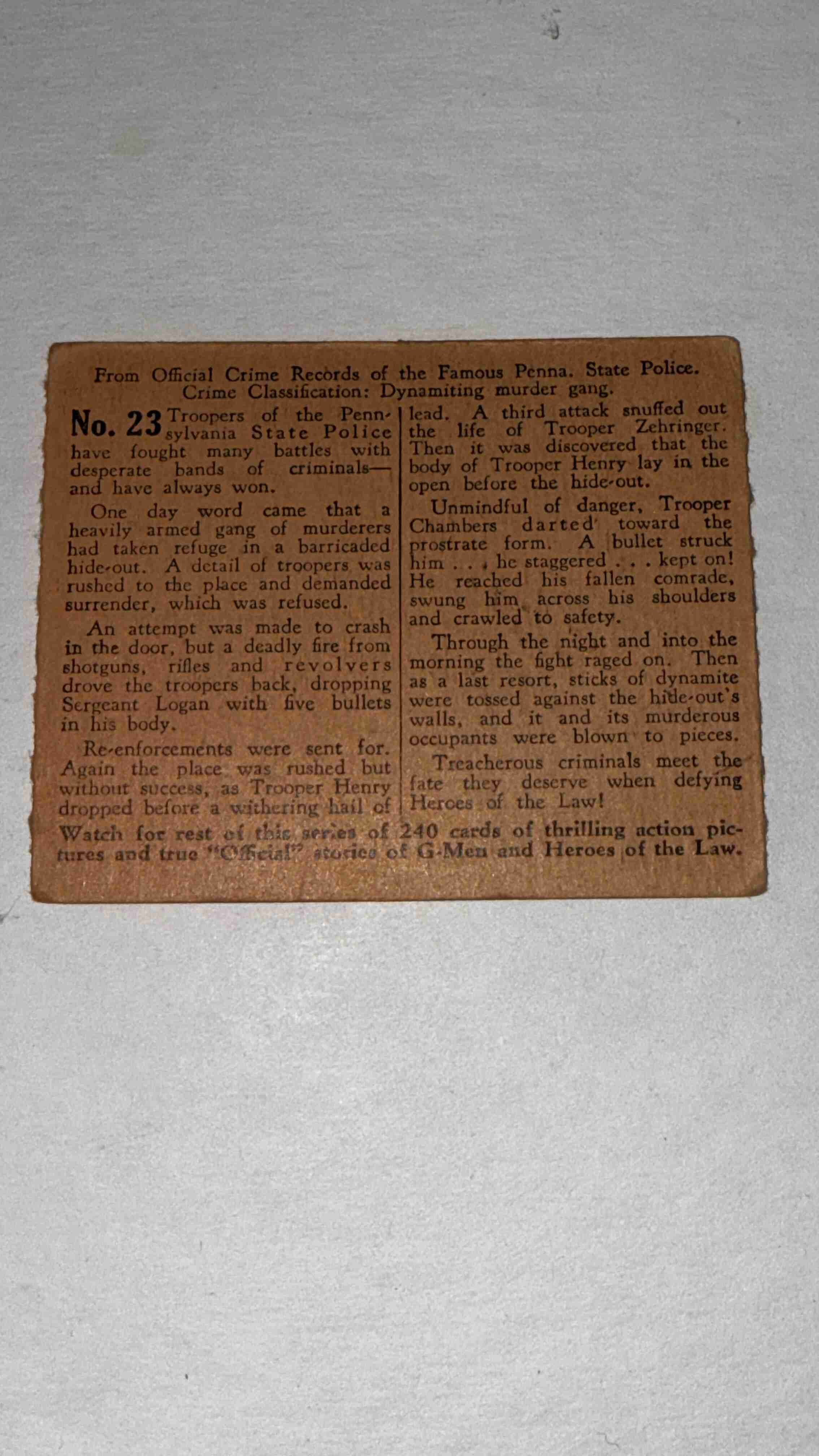 1936 Gum G-Men & Heroes of The Law - #23 "Blasting Out a Ga